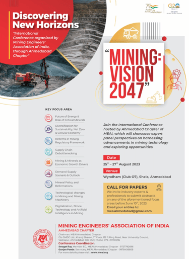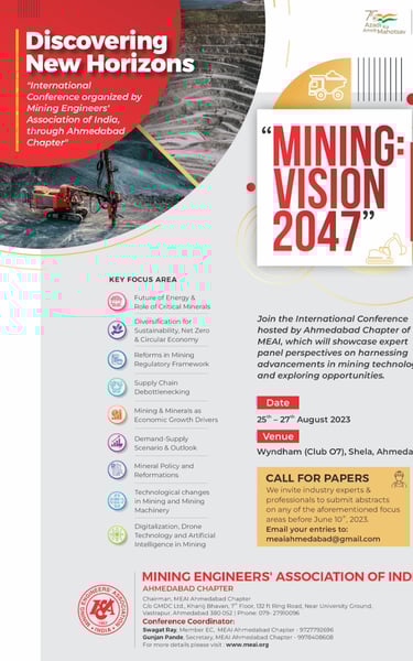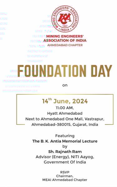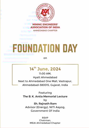 The Mining Engineers' Association of India (MEAI) was founded in 1957. It came into existence with the aim to safeguard and enhance the professional competence and integrity of the mining industry as well as its associated professionals. The members include Mining Engineers, Geologists, Metallurgists, Geo-scientists, Environmental Engineers, and Allied Engineers serving the mining industry, Educators, Researchers and Students. MEAI has a membership strength of more than 6,000. The Association operates through its 27 Chapters all over the Country aiming at Scientific and Technological developments in the mining industry for the betterment of the country. MEAI -Ahmedabad Chapter, established in June 1997, is one of the Vibrant Chapters among these 27 Chapters.