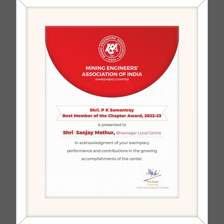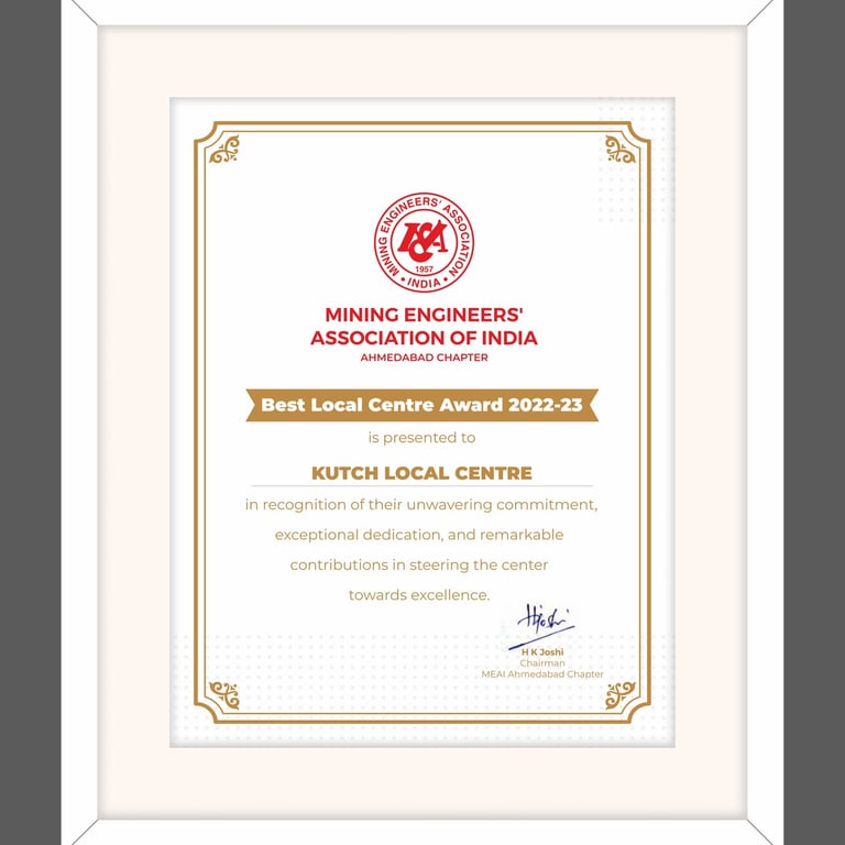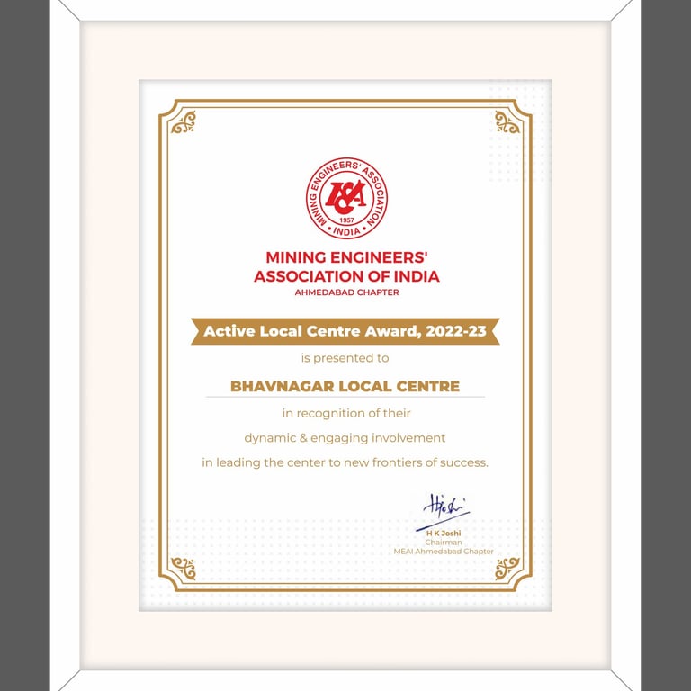 The Mining Engineers' Association of India - Ahmedabad Chapter is dedicated to safeguarding the interests of mining engineers, geologists, and allied professionals in India. We work towards improving their social and intellectual standing in the mining industry. Our association actively participates in promoting technical education in Mining Engineering and other Earth Sciences. We also monitor legislative developments affecting the economic and industrial growth of the country, particularly in the mining sector, and voice the collective views of our members to the authorities when necessary.