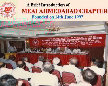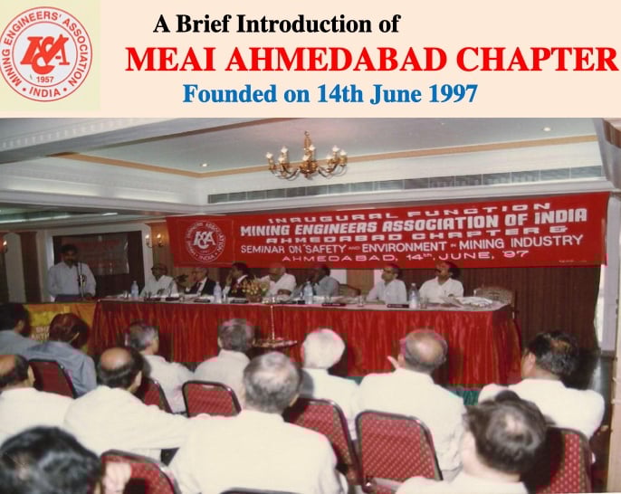 The chapter was launched on 14th June,1997 with a one-day seminar on “Safety & Environment in the Mining Industry”. Late Shri Vinay Mahajan, the then DGMS was the Chief Guest and Shri Ramesh Patel, Chairman, GMDC the guest of honour. Shri. T. V. Chowdhary, President, MEAI presided over the function. The Founder Chairman was Shri. B. K. Antia with Shri. S. N. Mathur as Secretary. It is one of the vibrant chapters among these 26 chapters and is currently celebrating its silver jubilee year. The chapter has grown over the years and currently has 315 members. It has actively organised various National and international events. The Ahmedabad chapter operates through its 4 local centres ( Ahmedabad, Bhavnagar, Kutch and South Gujarat) for harmonious coordination of the chapter activities. The chapter introduced the local Centre concept in October 2008 and later from the rules and regulations for regulating the activities of the centres and their smooth administration. The chapter organised a National seminar jointly with Veraval- Porbandar chapter titled “ITEM99 introduction of information technology in Mining” in 1999.